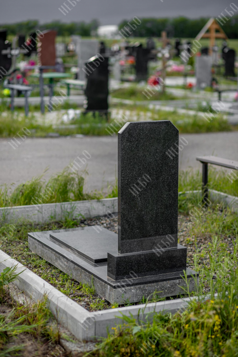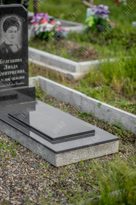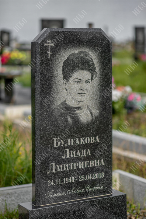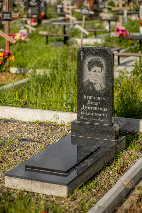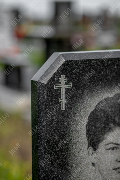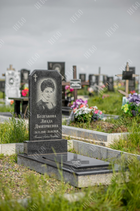 Христианский памятник с вертикальной стелой и закрытым надгробием выполнен в классическом черном цвете. Гранитная стела ритуального изделия имеет скошенные углы и дополнительно фигурно обработанные края по контуру. Такое исполнение придает внешнему виду памятника сдержанный, но в то же время оригинальный вид. Размер и форма памятника проработаны экспертами с учетом нагрузки и эстетического восприятия ритуального изделия. Закрытое надгробие практично в уходе и при желании позволяет расположить на нем эпитафию.